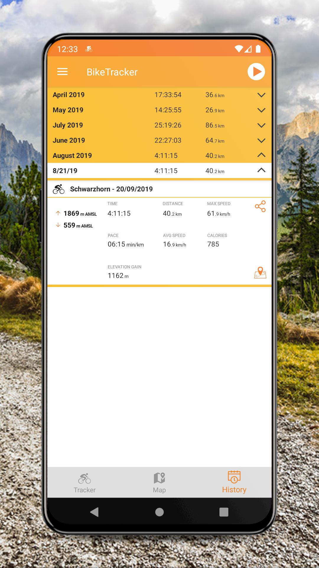 자전거 속도, 거리, 고도 및 GPS 위치를 측정하고 경로를지도에 기록 및 표시하고 스포츠 활동에 대한 전체 통계를 제공합니다.