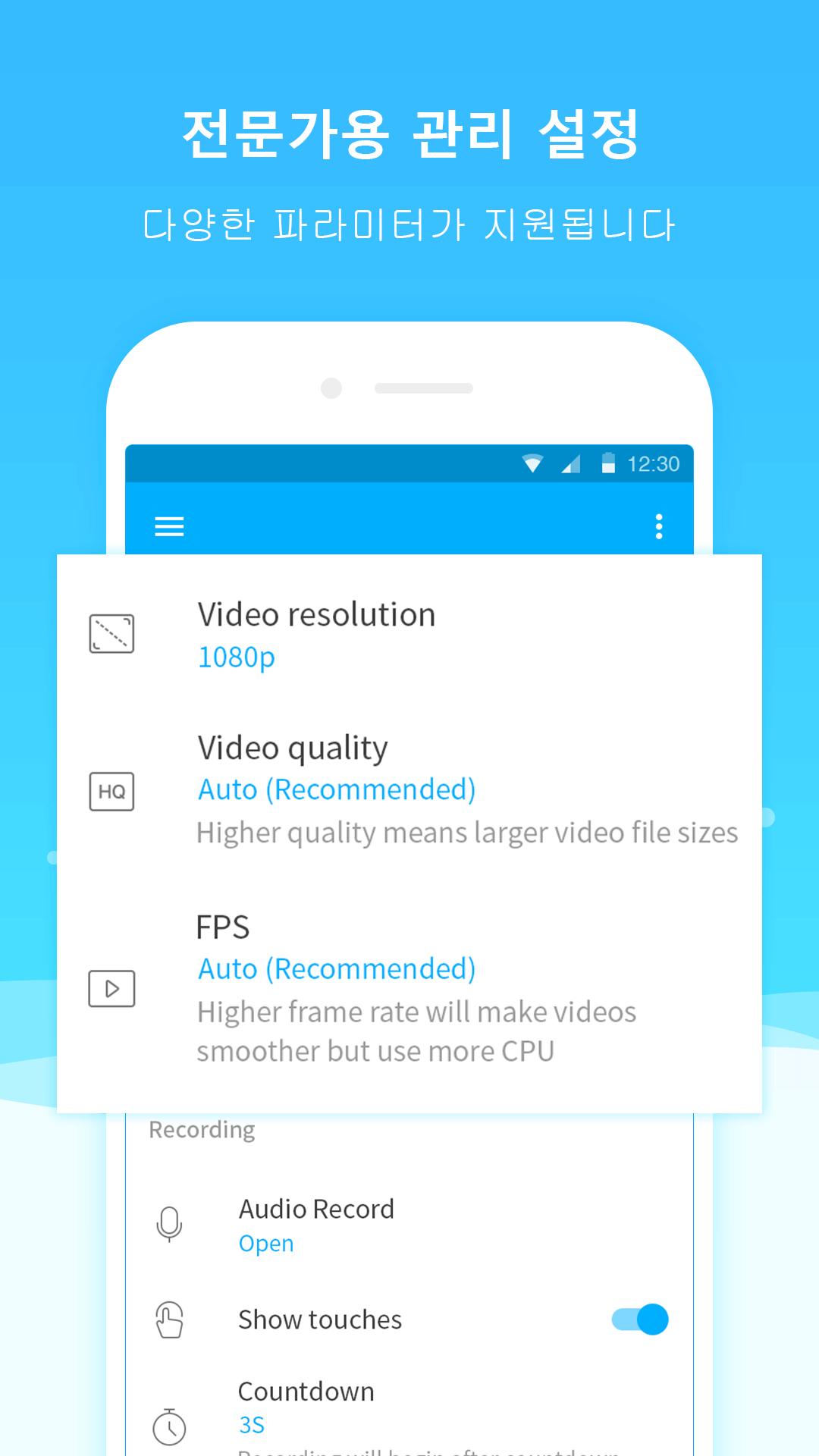 - 화면 녹화 카운트 다운 설정 : 없음 3 초 5 초
