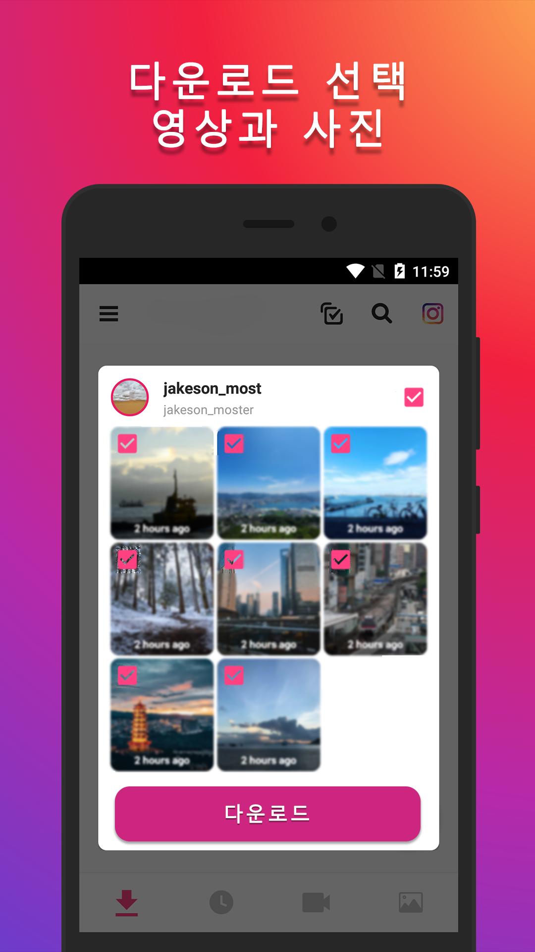 ????Instagram에서 비디오, 사진, 스토리, 하이라이트, IGTV를 대량으로 다운로드하십시오.