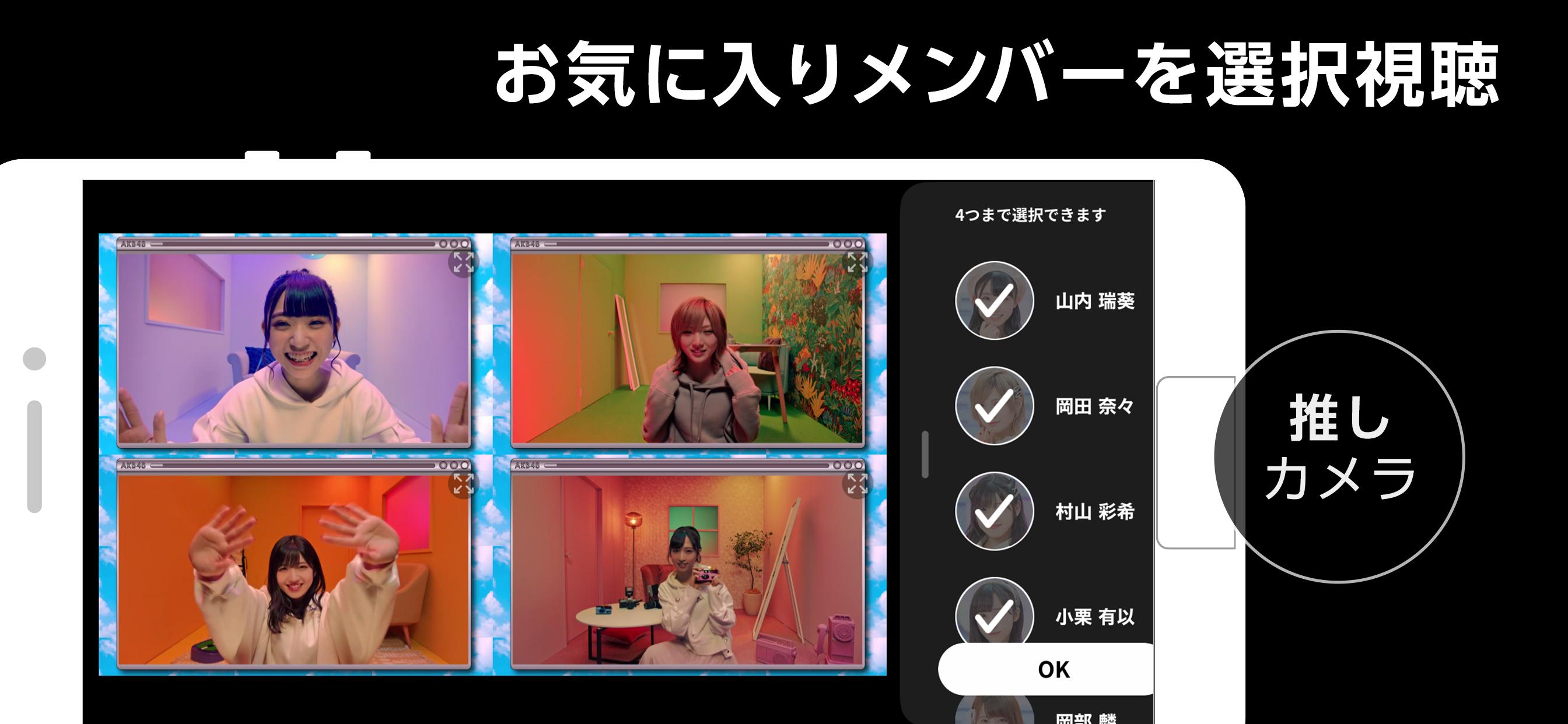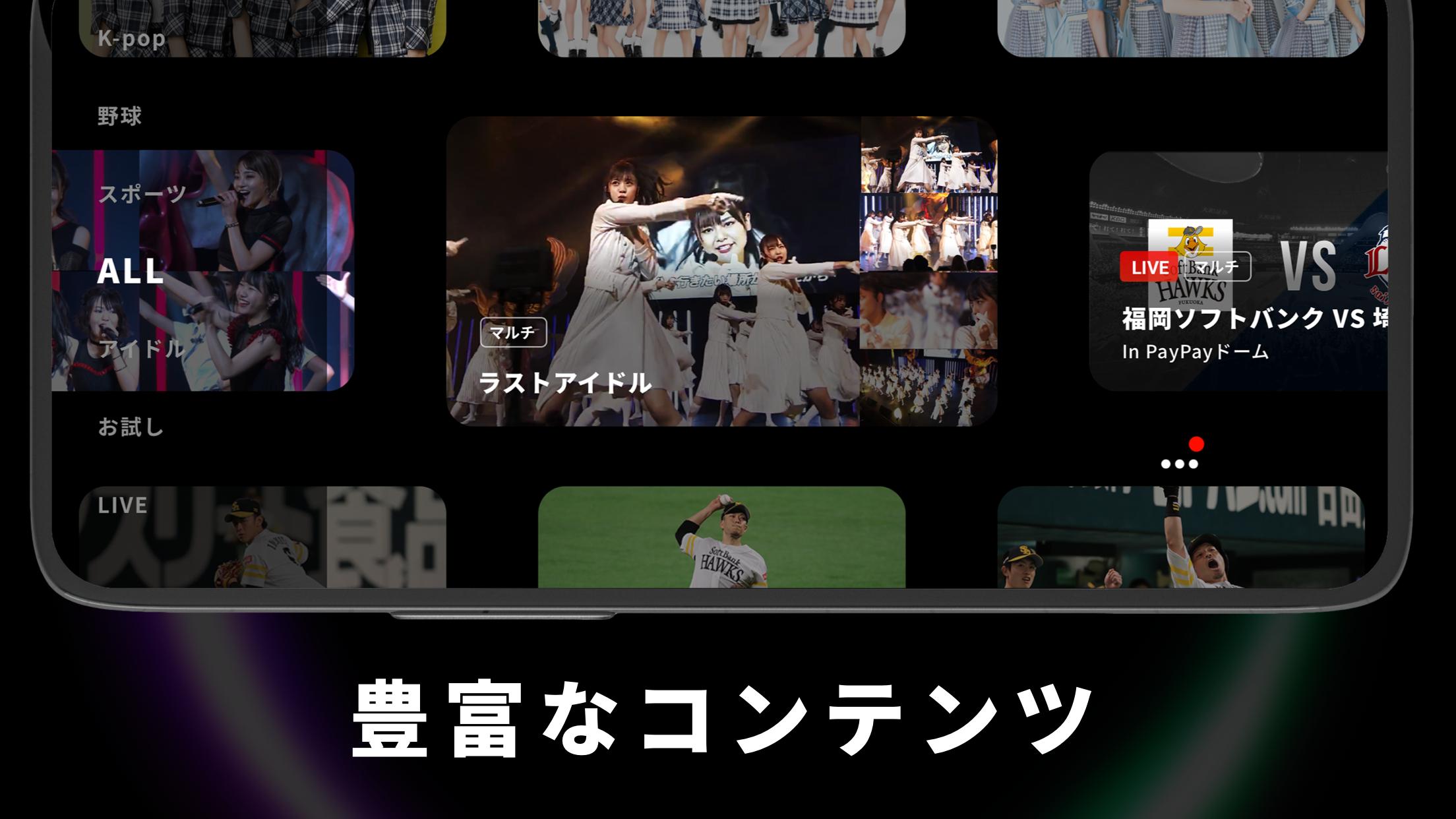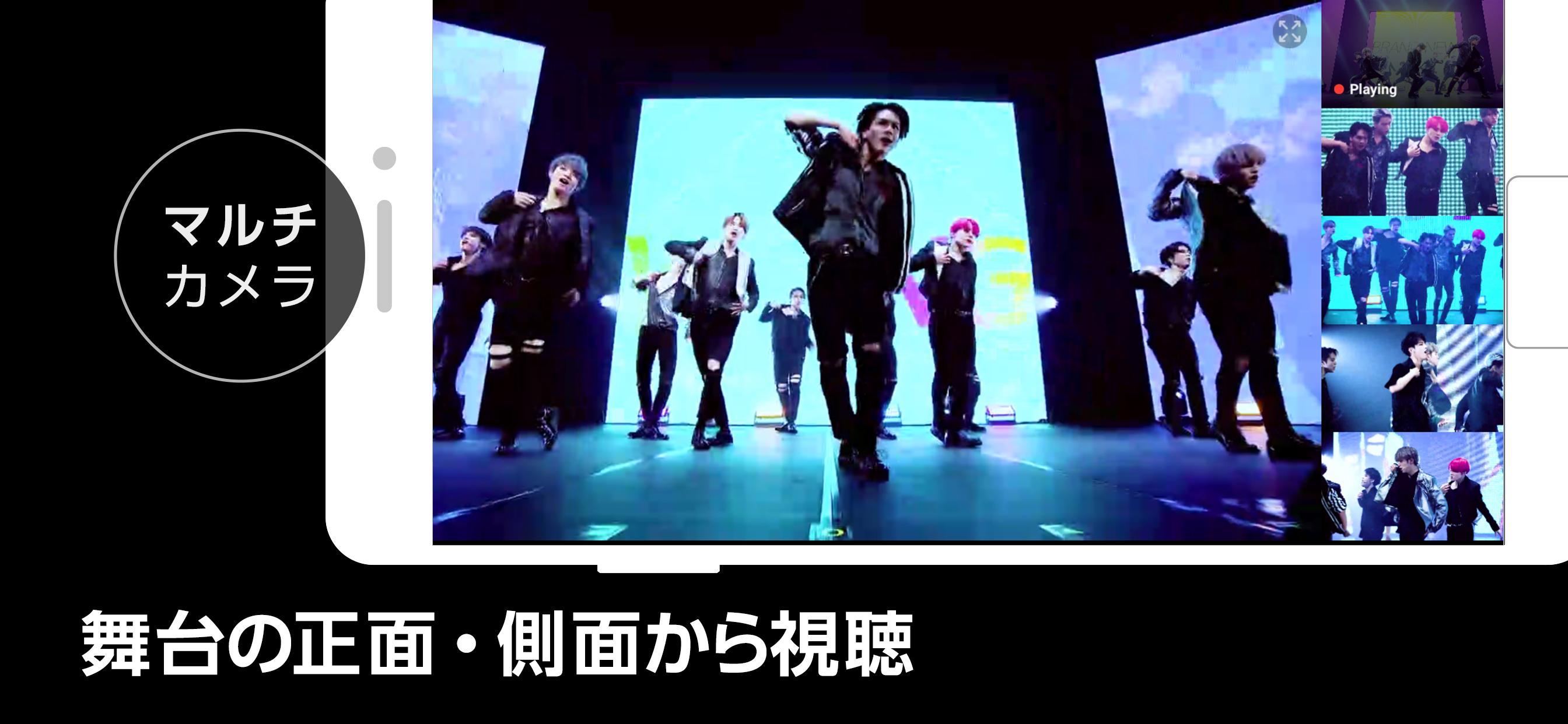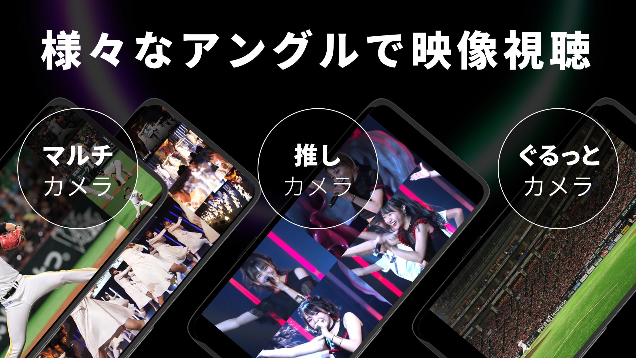 舞台や球場の正面・側面など様々な角度から視聴できます
