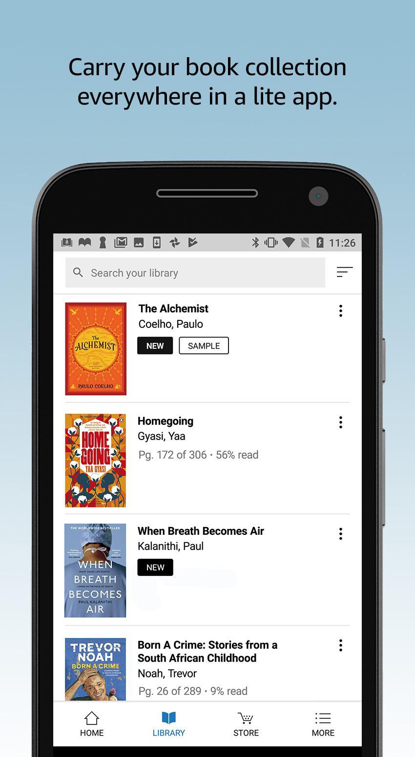 Do you want to read books on your smartphone? Kindle Lite lets you read with no login or payment information required. Read free samples of millions of books, including best sellers and titles from local authors. Whatever your interest, we have it covered from fiction, to romance, religion, self-help, and more. Kindle Lite takes up less space on your phone and is built to provide a great reading experience even on slow or patchy networks.