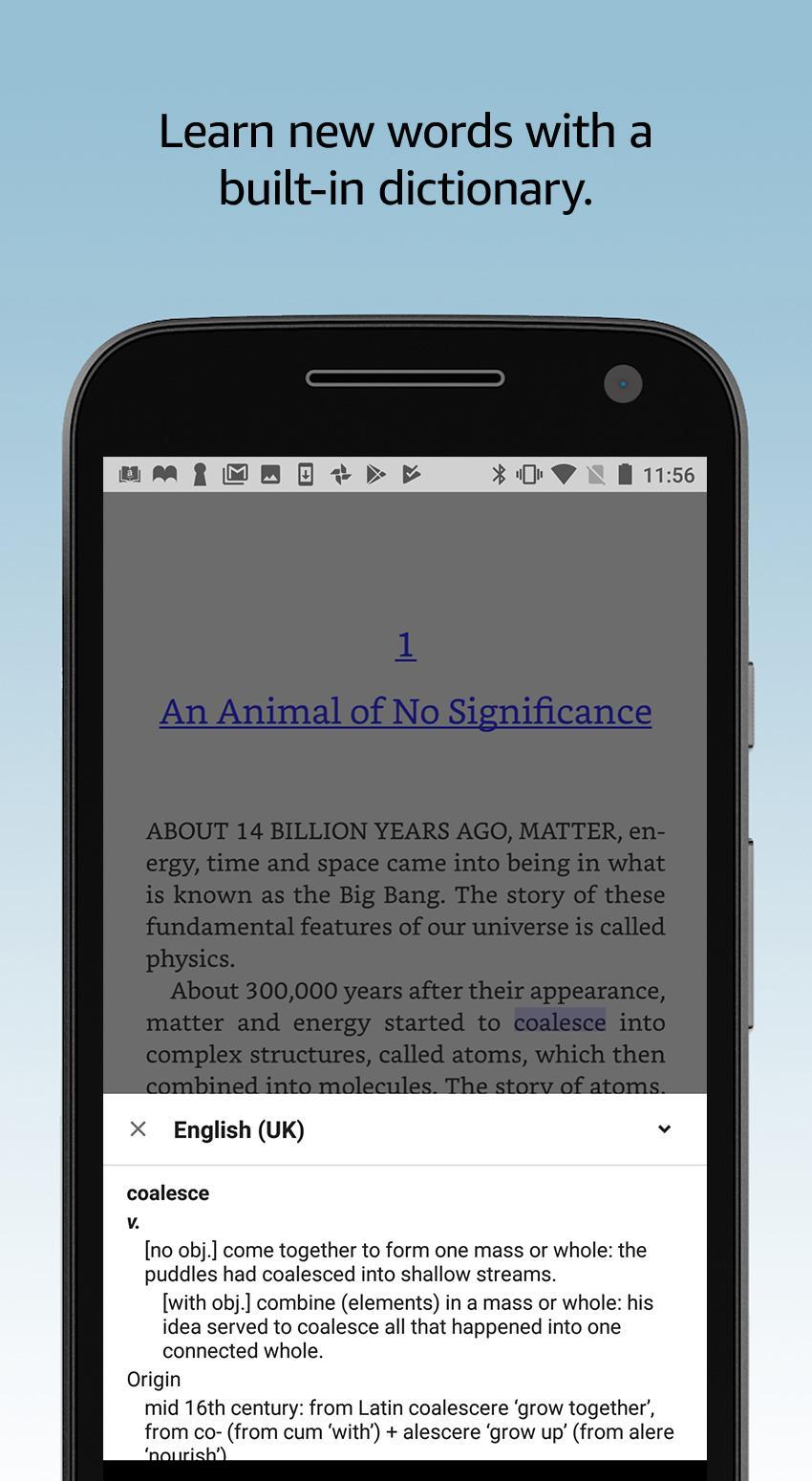 Learn new words – Kindle Lite's built-in dictionary lets you check the meaning of words right when you need them most.