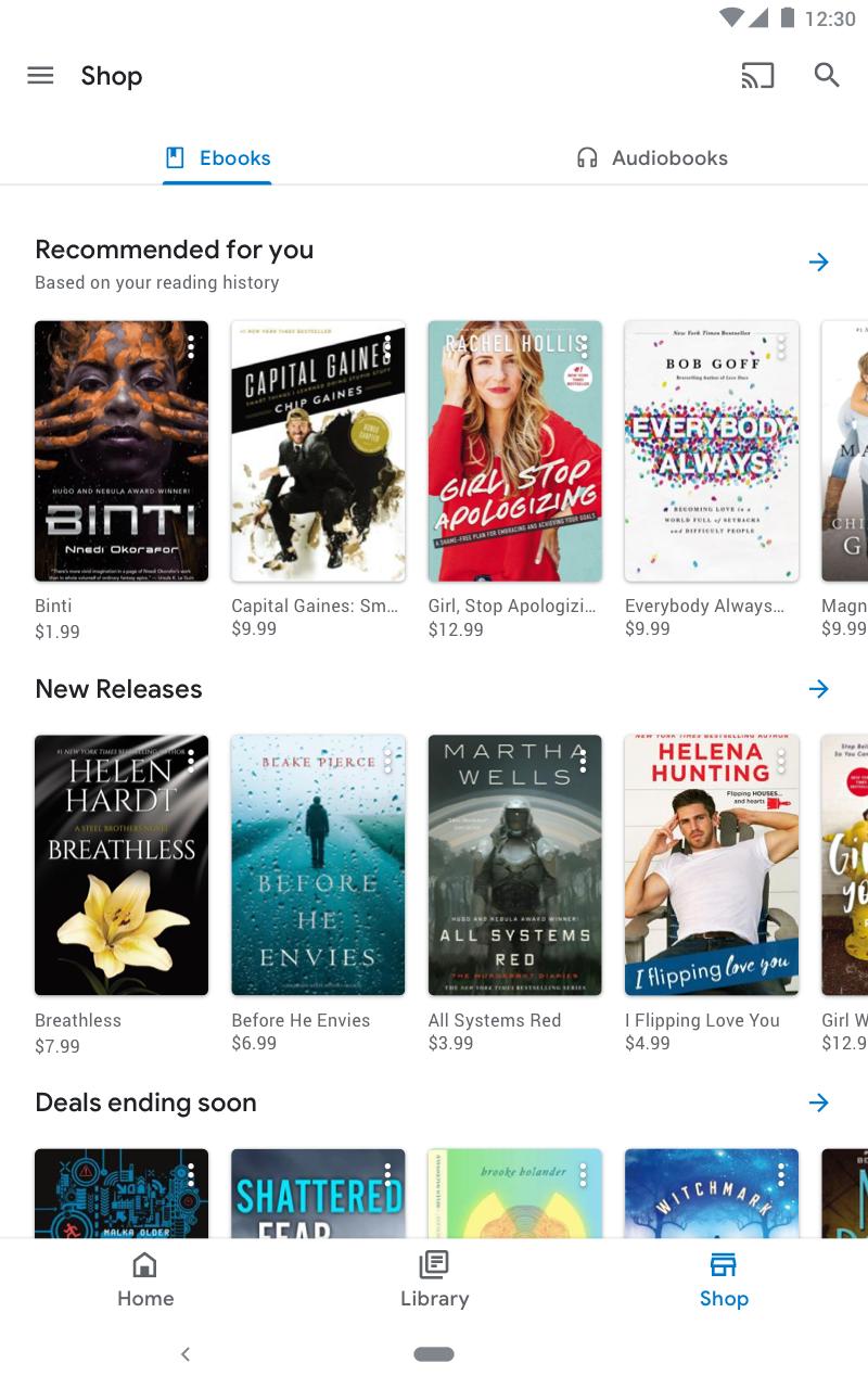 Google Play 북 앱만 있으면 Google Play에서 구매한 오디오북과 eBook을 즐길 수 있습니다.