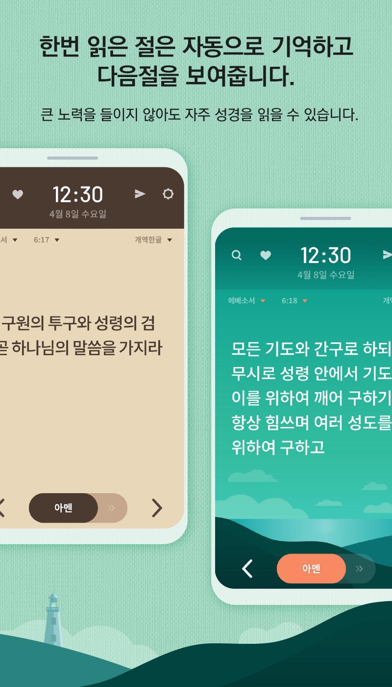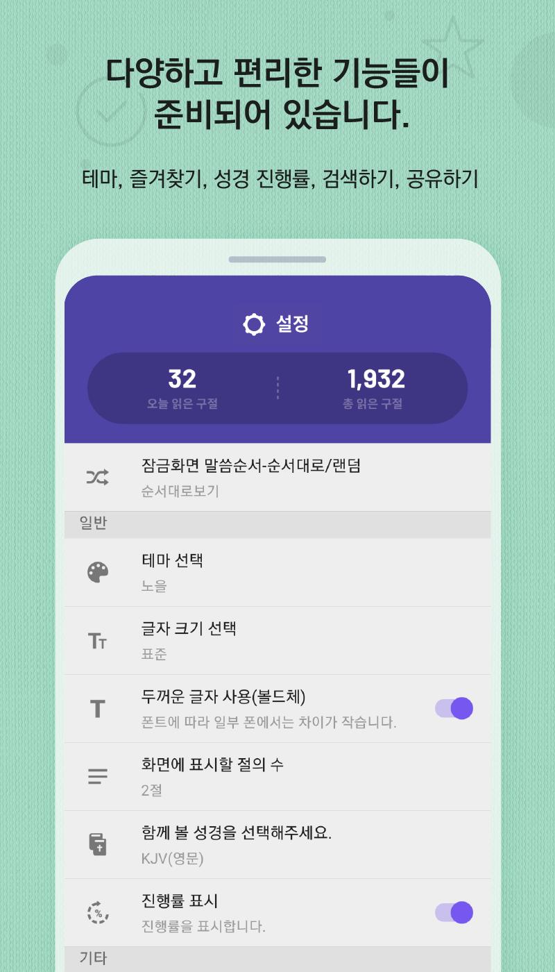 ✔️● (1) 너무 간단합니다! 스마트폰을 켜면, 성경 한 구절이 뜹니다. 한절한절씩 볼 수 있어 부담없이, 볼 수 있습니다. 폰을 자주 열어보시나요? 그만큼 더 성경을 읽어 하나님과 가까이 할 수 있습니다.