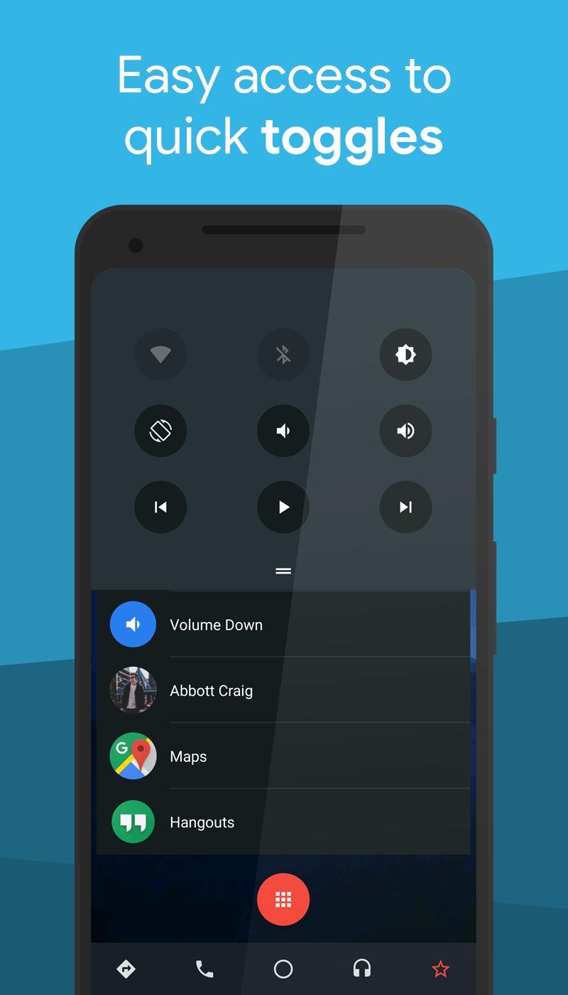 • Shortcuts – Keep your favorite apps and Android shortcuts at your fingertips. Includes quick settings toggles.