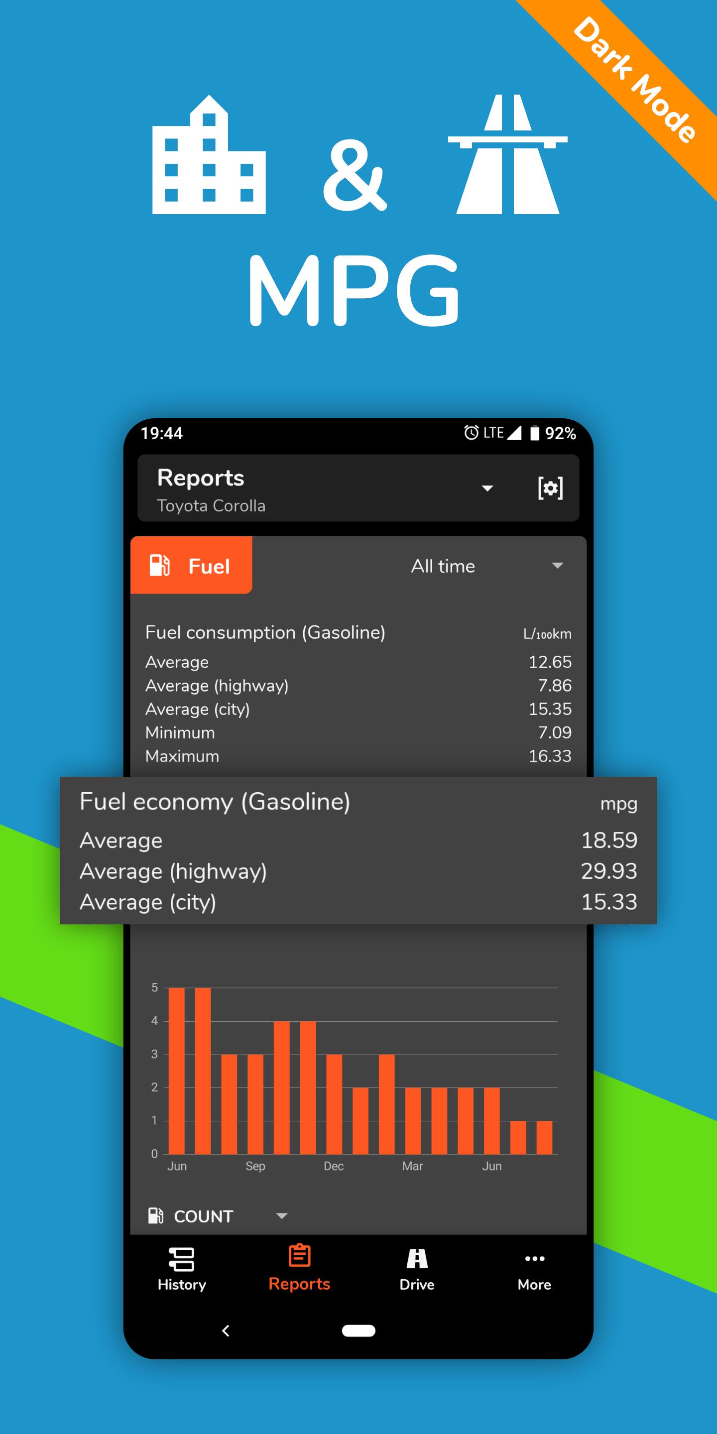 ✓ Advanced configuration for statistics units (you are NOT limited to mpg and L/100km)