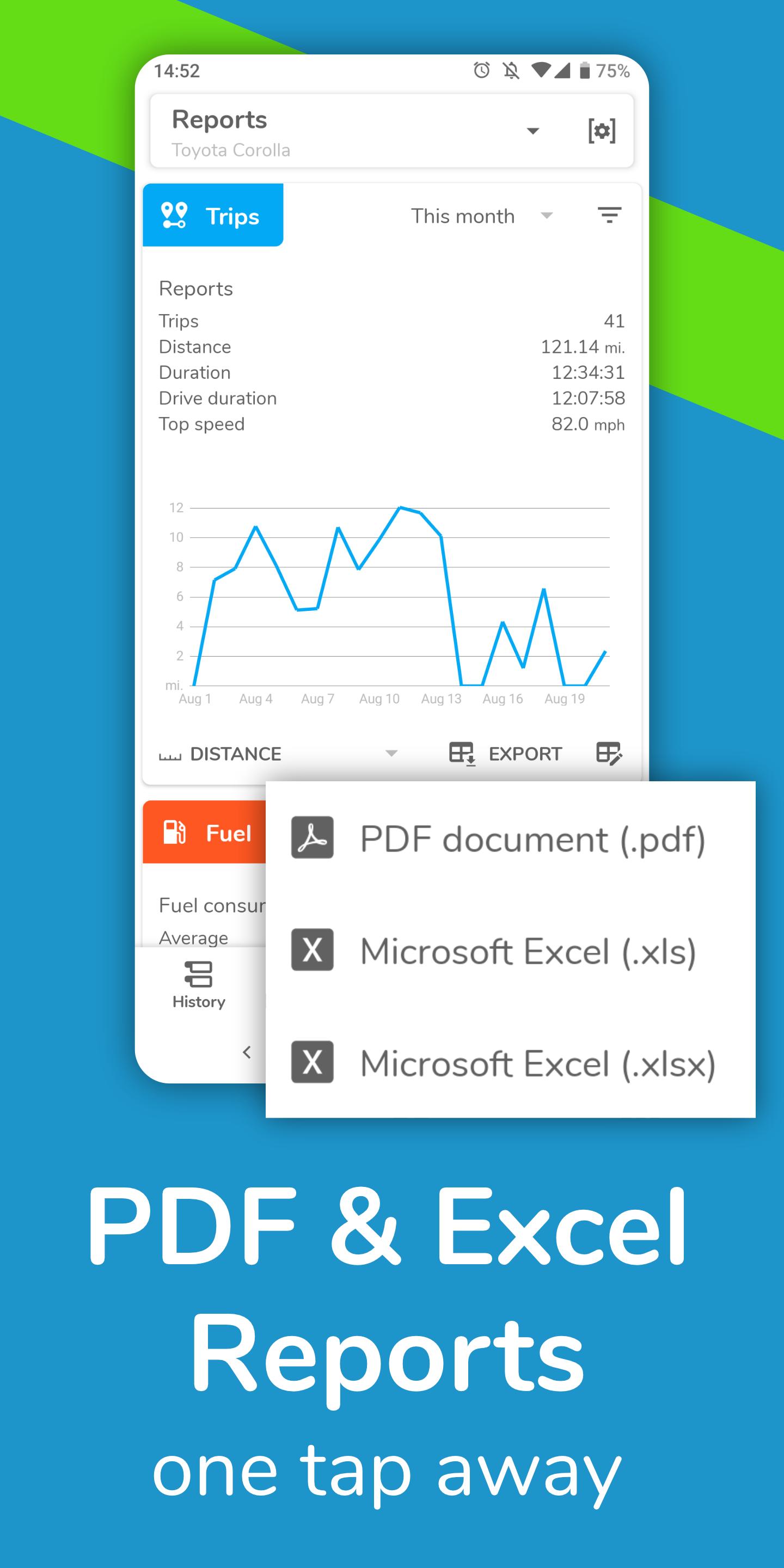 The vehicle maintenance tracker allows you to control your fuel consumption, distance traveled and gas fill up as well as track gas cost, fuel economy and efficiency. Additionally you can record your trips together with the vehicle GPS route