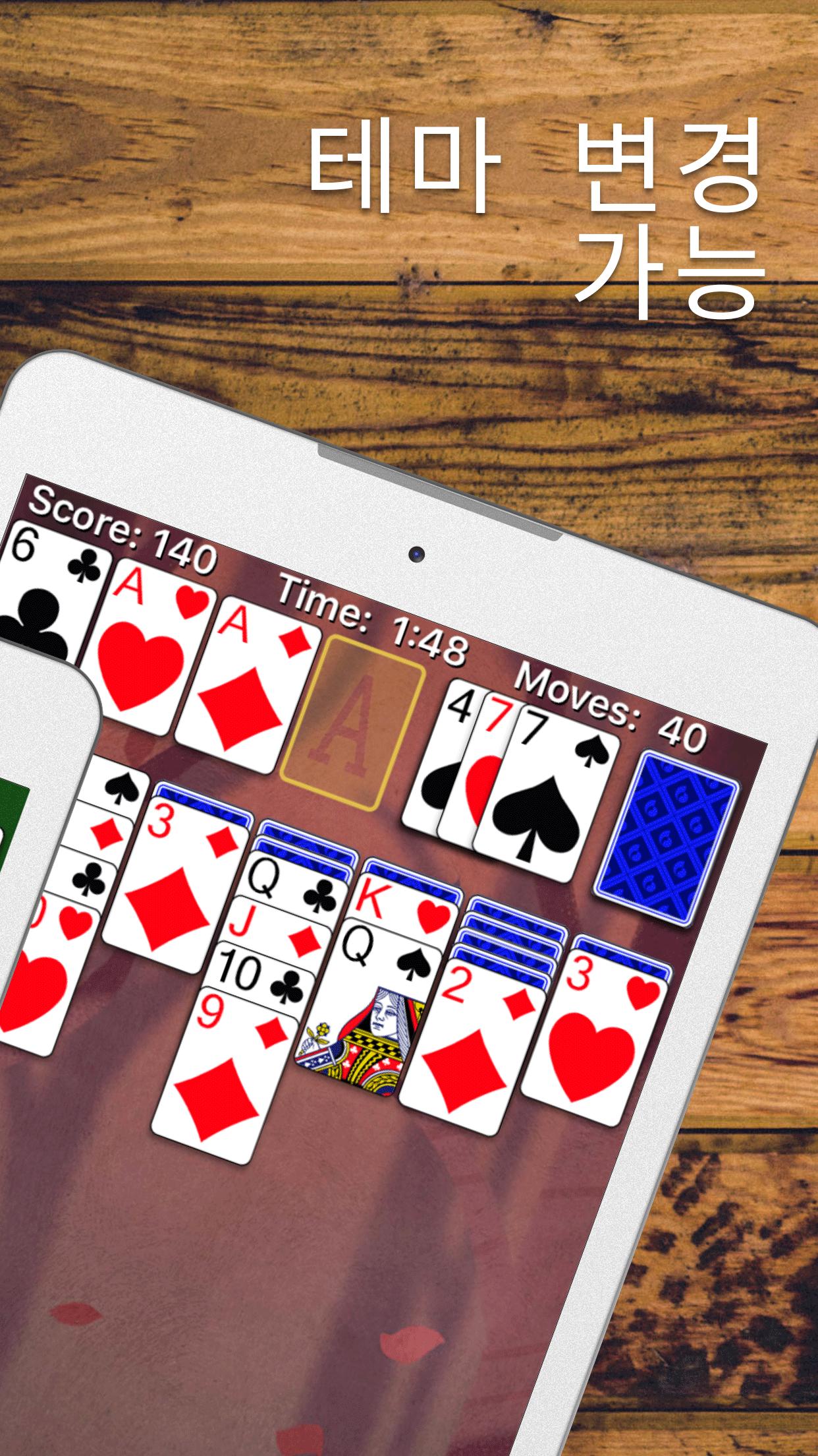 항상 똑같은 게임플레이와 그래픽에 싫증 나셨다고요? 솔리테어 커스텀 버젼을 안드로이드 기기에서 즐겨보세요! 작은 스크린에서 큰 태블릿 스크린까지, 두루두루 즐기실 수 있습니다. 저희 솔리테어는 마켓에 있는 어느 솔리테어 게임보다 더 나은, 최상의 게임 플레이를 제공해 드립니다. 한번 플레이해보시면 그 확연한 차이를 느끼실 수 있으실 거에요. 어차피 공짜잖아요? 한번 다운로드 해보세요!