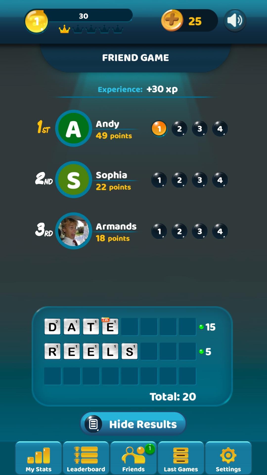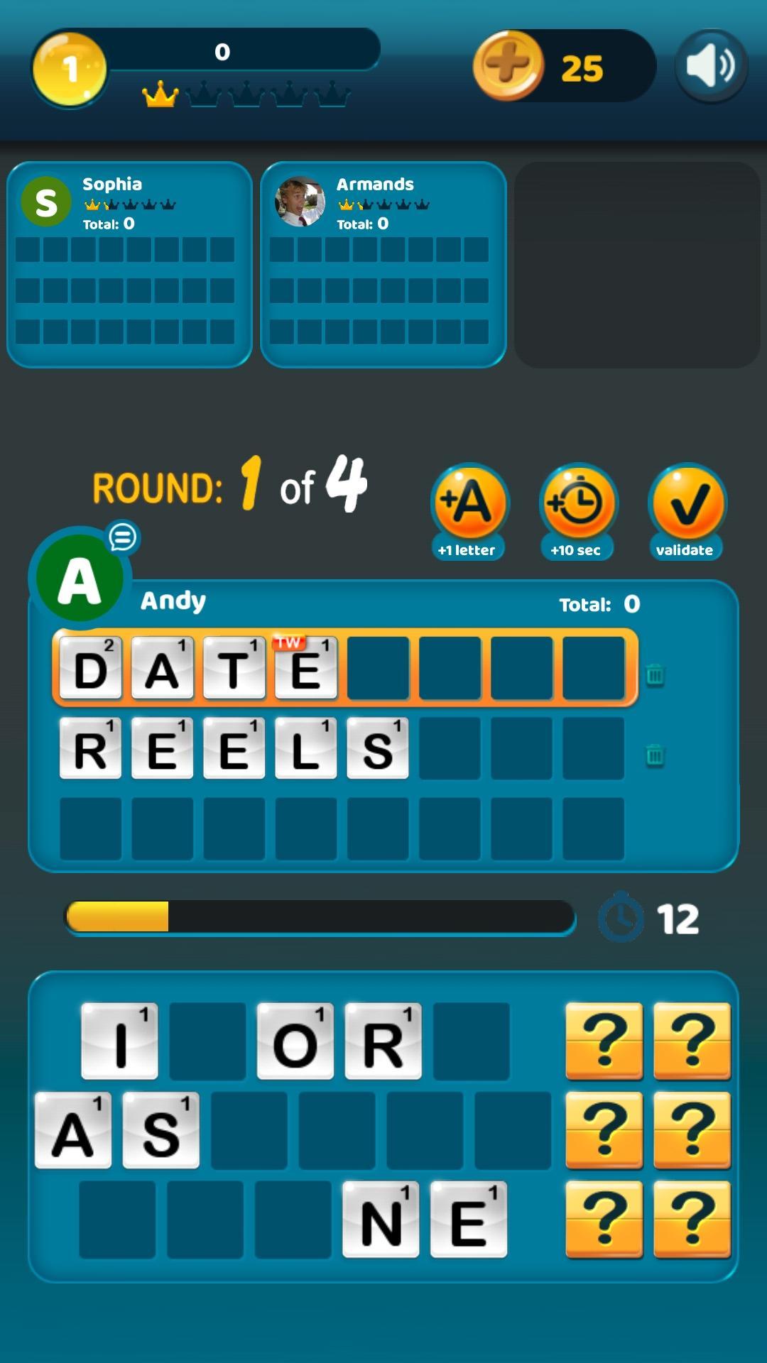 However, the multiplayer challenge really makes this different. Each round lasts just sixty seconds, and as you drag letters into your word slots above, there are other people doing the same. You battle against the time limit, your own vocabulary and the other players all at once!