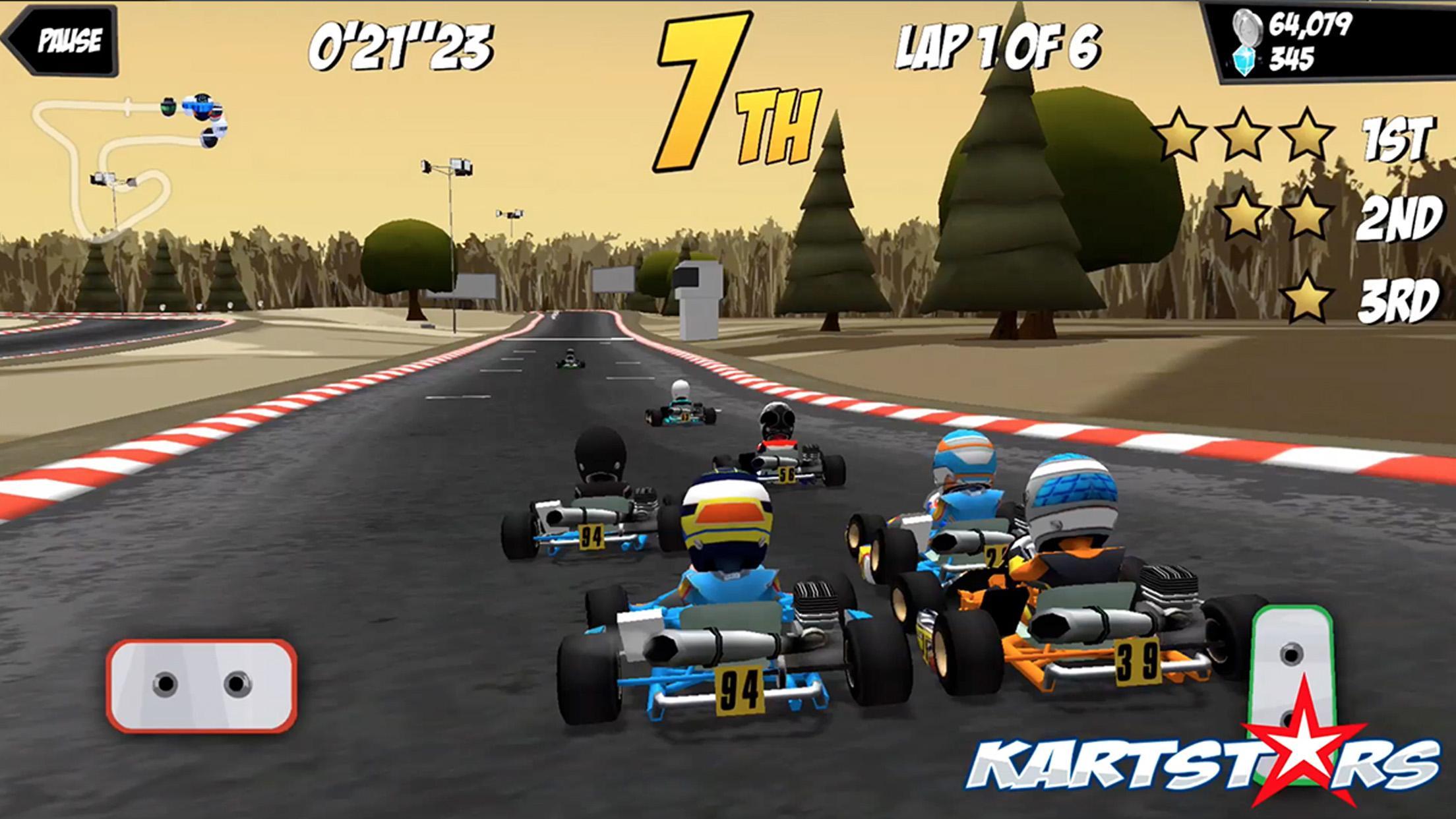 Welcome to the World Karting Championships! Play with your friends on multiplayer or race through a single player campaign. Feel the rush as you play through vintage, sprint and super karts in a massive 300 round world championship season. Outrun the competition and finish on the podium to earn coins, upgrade your kart, and become the World Karting Champion.