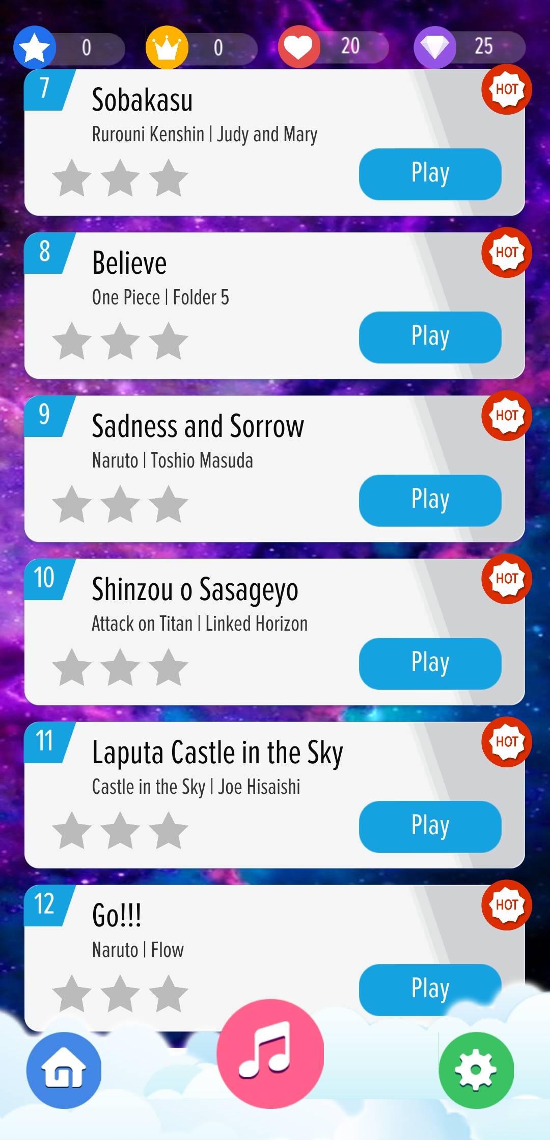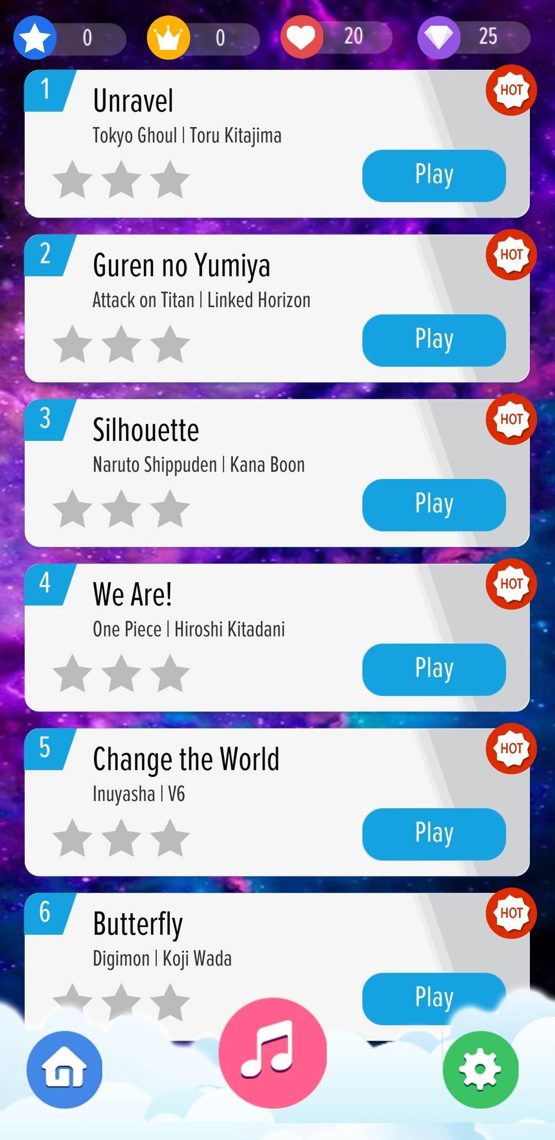 You can play the most popular song of Manga and Anime in this piano game. The gameplay is easy to play and simplifies piano keyboard into white tiles and black tiles.