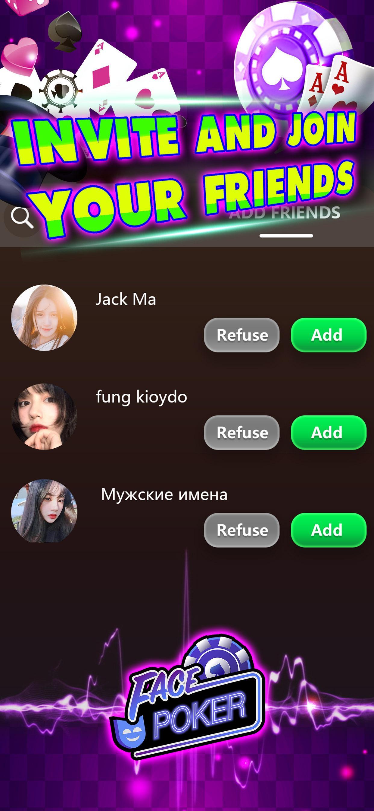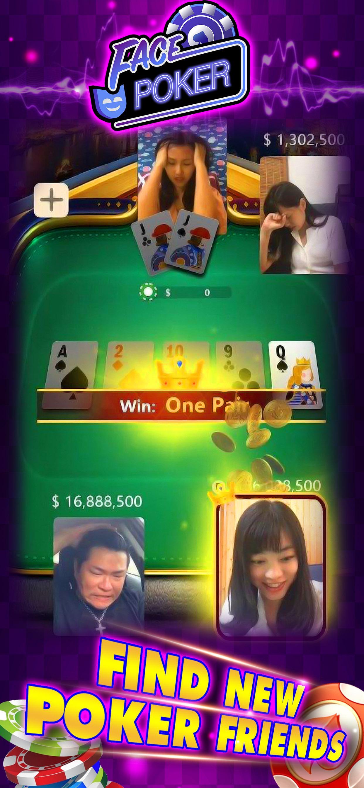 Play Texas hold'em poker anytime and anywhere. You can make new friends around the world Just play FacePoker.