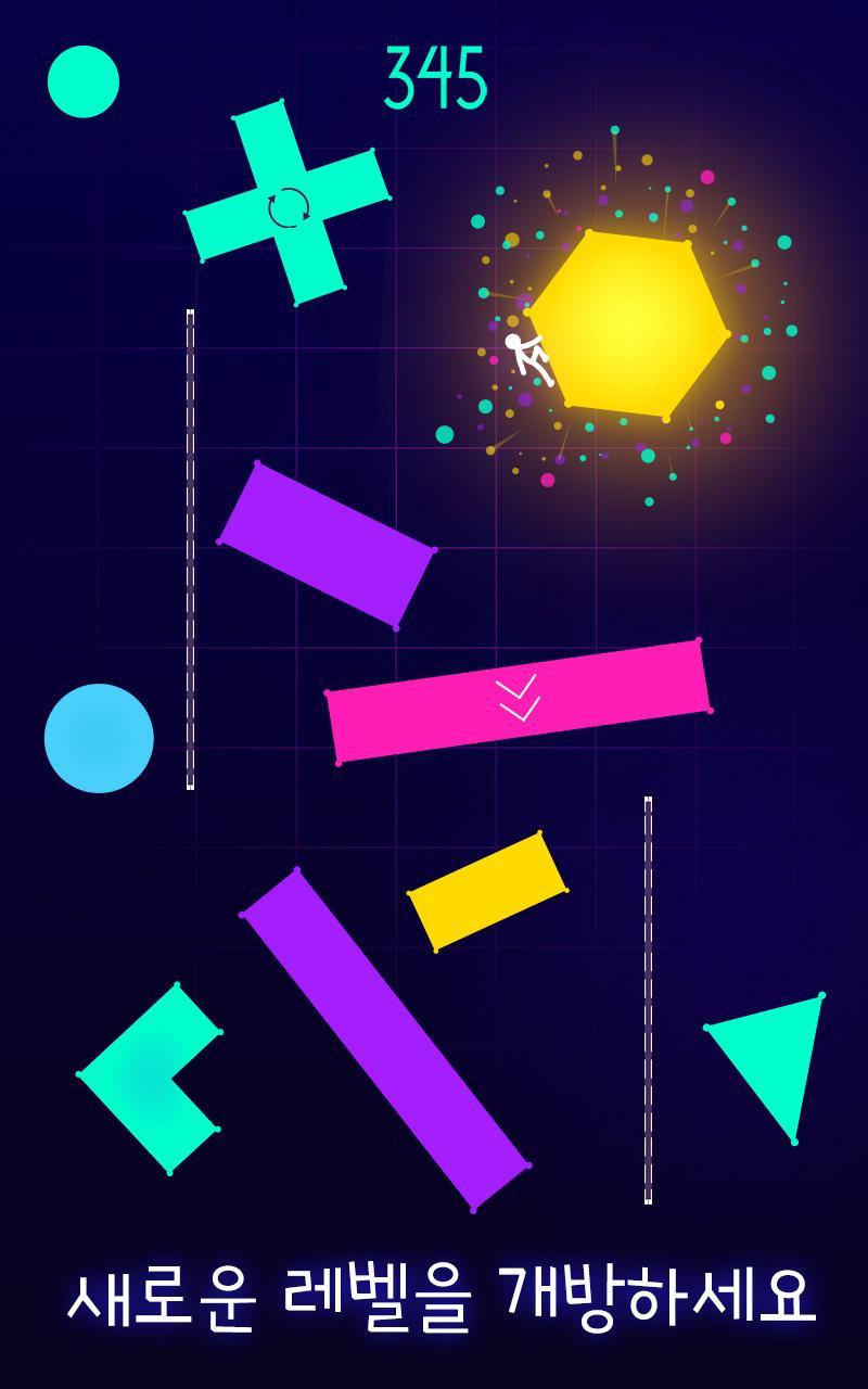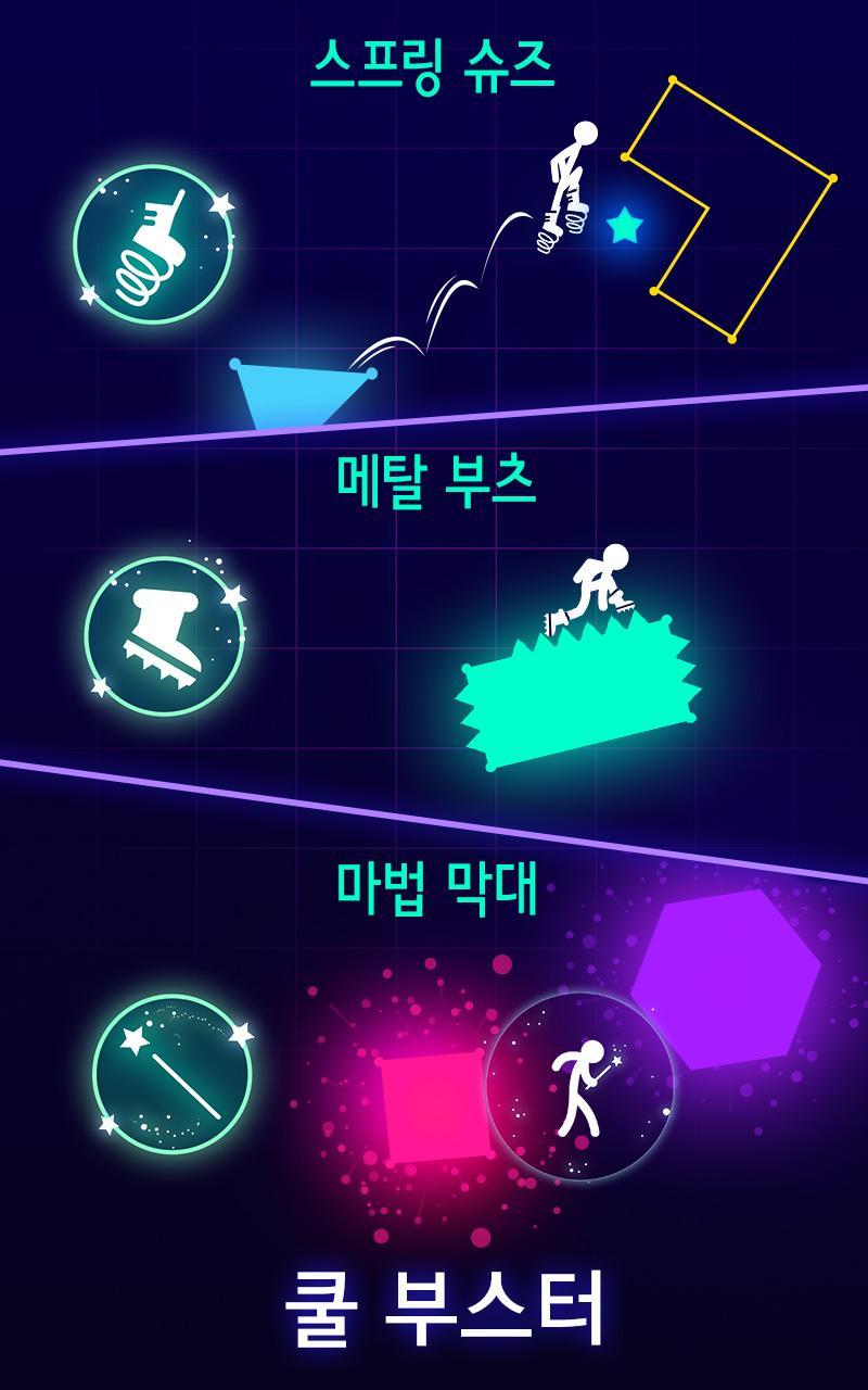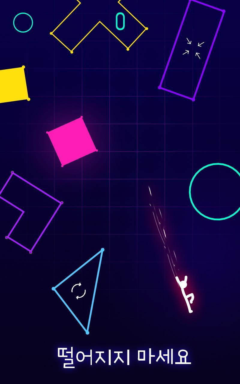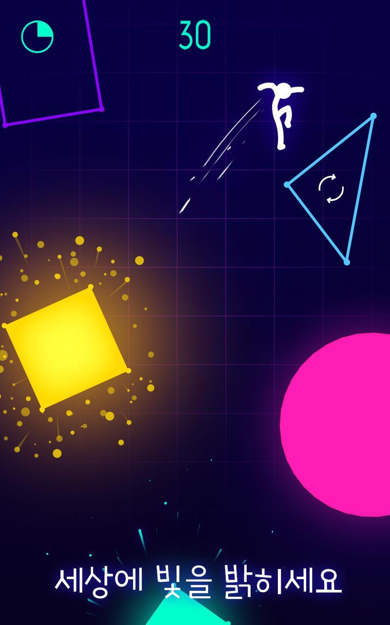 막대 인간을 조종하여 네온 색상 도형들 사이를 이리저리 뛰어다니고, 몸을 돌리고 미끄러지며 도형에 불을 밝히세요.