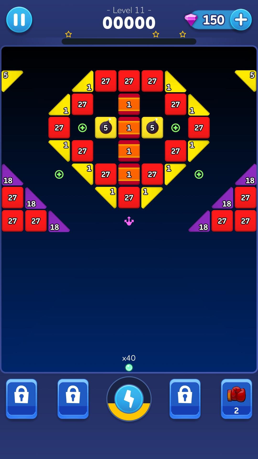 - Clear the board to win but be careful, if any brick comes all the way to the bottom, you will lose