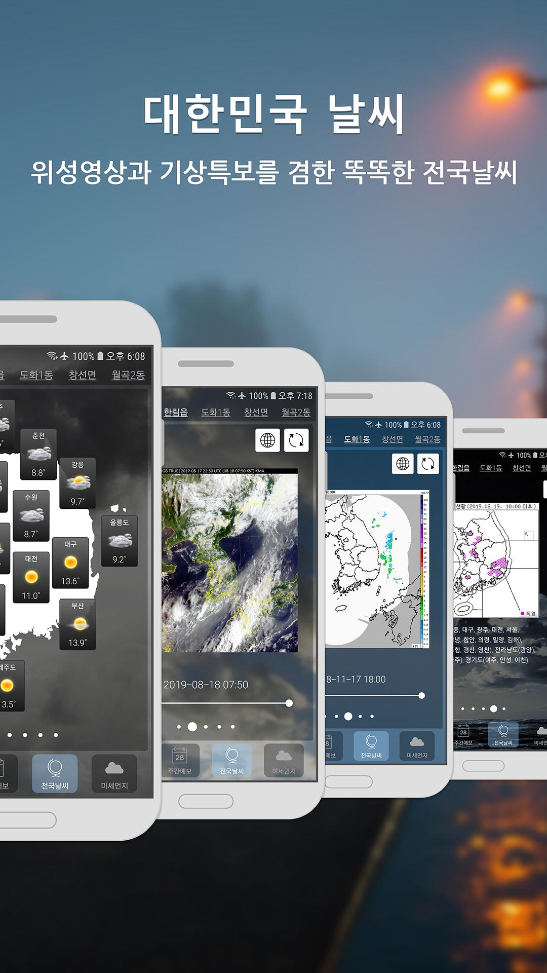 그 밖에 눈/비, 미세먼지, 기상특보 자동 알람과 상태바 현재날씨, 다양한 종류의 위젯 등의 편의 기능을 제공합니다.