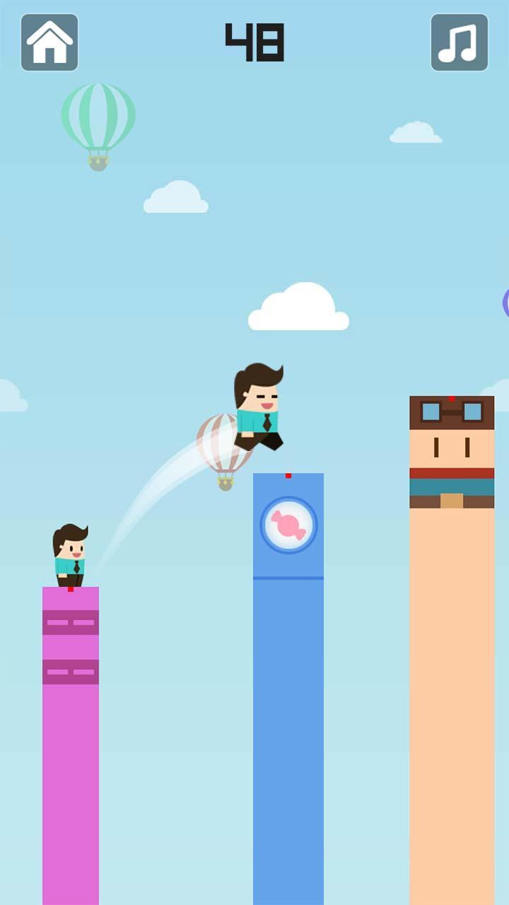 하늘 높이 뛰어올라: 캐릭터가 고층빌딩 속에서 조금씩 올라갑니다. 한발한발 뛸수록 높이 올라가죠, 누가 더 높이 가는지 대결해봐요!