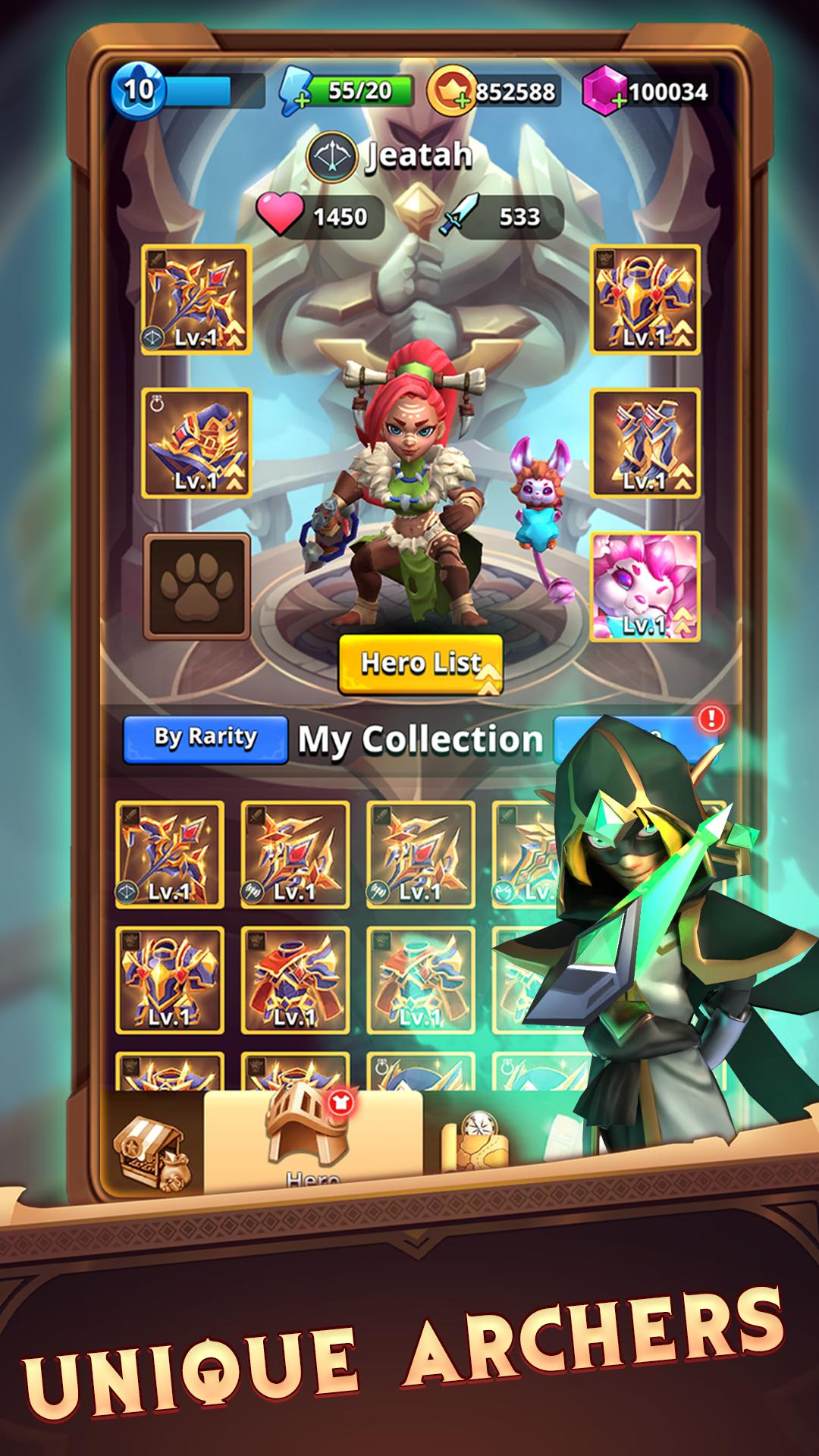 Crawl through thousands of dungeons, fighting for treasures, items and valuable gears to upgrade your strength and become more powerful. Enjoy countless combinations of unique abilities to keep your archer alive.
