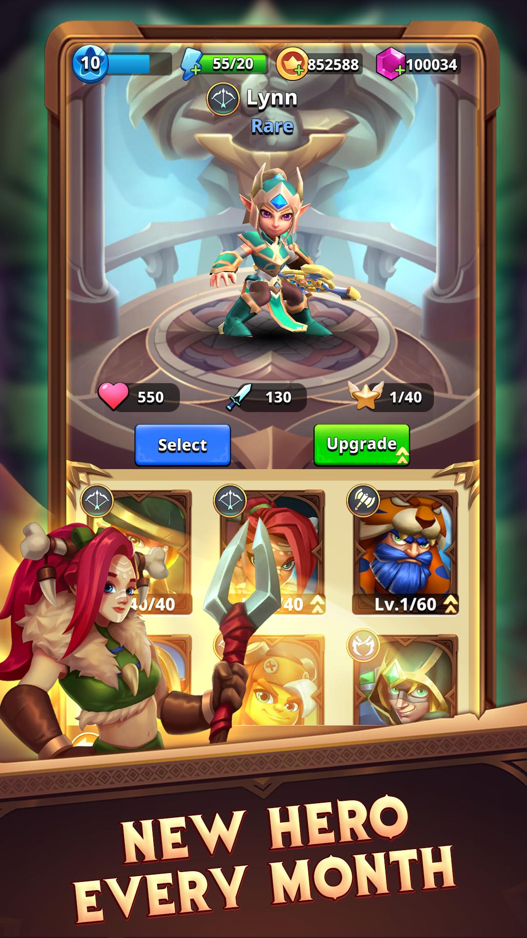 The monsters become stronger, faster and more powerful, so are you. Raid the dungeon, collect weapons, armors, amulets and more gears. Equip yourself with the best items, upgrade to make them even stronger.